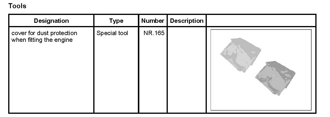 --> Use the cover for dust protection when fitting the engine NR.165 on the engine assembly support.