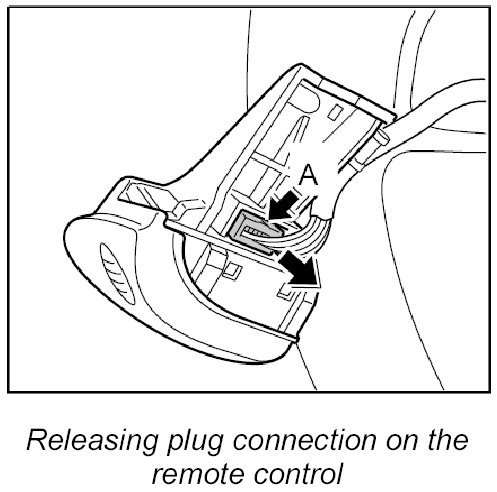 2. Release the electric plug connection on the remote control -A- and disconnect it.