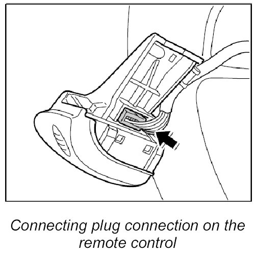1. Insert electric connector into the remote control until it clicks into place.