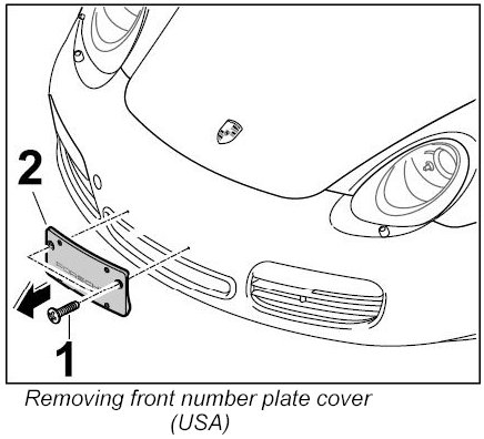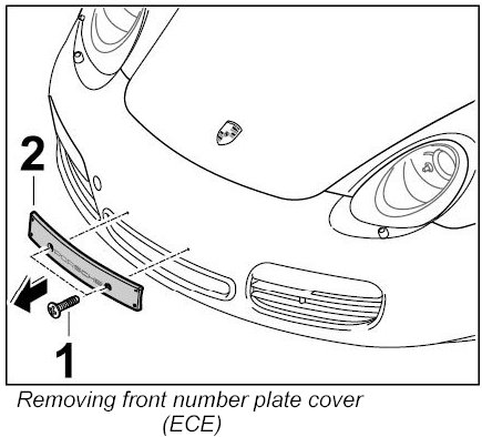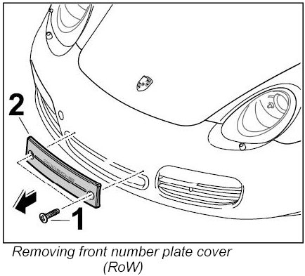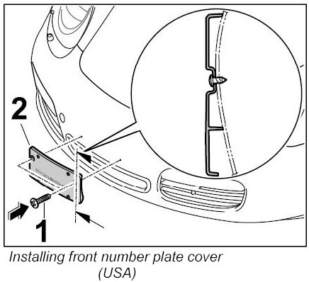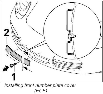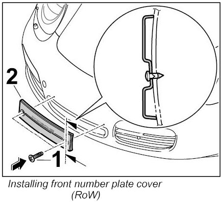 1. Unscrew fastening screws -1- and take off front number plate cover -2-.