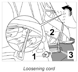 1. Unscrew fixing clip -1-, remove cord -2- and metal pad -3- and then pull cord upwards (right and left).