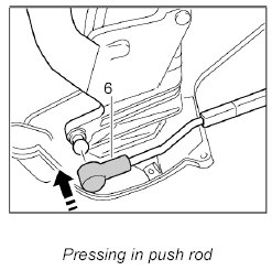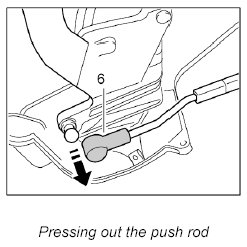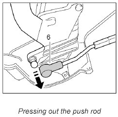 4. Press ball socket of push rod -6- off the ball head of the main folding top bow on the right and left.
