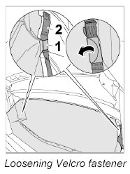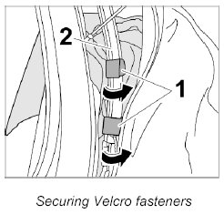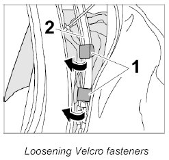 4. Open Velcro fastener -1- on tension strap -2- right and left.
