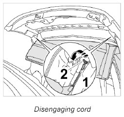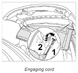 3. Disengage cord -1- of roof liner at buffer -2- on right and left B-pillar.