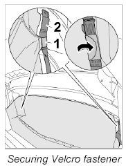 5. Secure Velcro fasteners -1- to the push rod -2- right and left. To do this, position the loop up to the seam of the Velcro strip and press the Velcro firmly together.