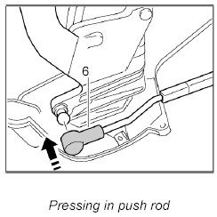 7. Move convertible top to its original position and press ball socket of push rod -6- onto ball head of main folding top bow.