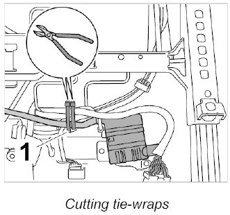 1. Cut tie-wraps -1- and disengage wire harness -2- ( -arrow A- ).