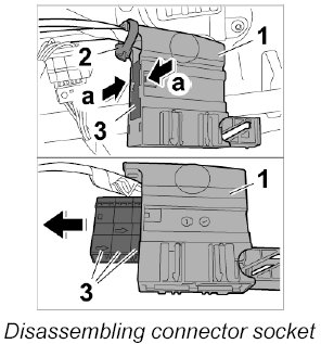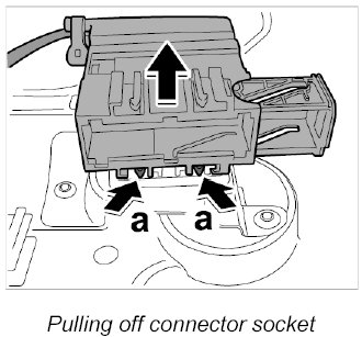 6. Release connector socket -1- ( -arrows a- ) and remove the three individual connectors -3-.