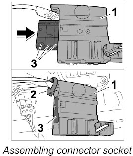 4. Press the three individual connectors -3- into the connector socket -1- until they engage firmly.