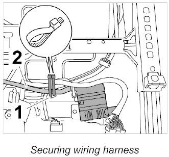 7. Secure wire harness -2- with new tie-wraps -1-.