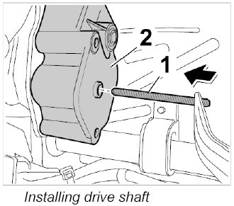 3. Pull drive shaft -1- out of the gear mount -2- and check for damage.