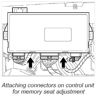 1. Attach the three connectors on the control unit for memory seat adjustment until they are felt to engage.