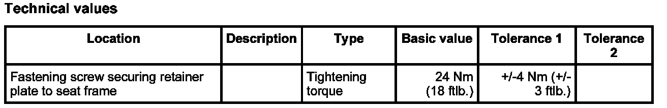 - On vehicles with an AWS sensor, the retainer plate must only be replaced together with the seat frame.