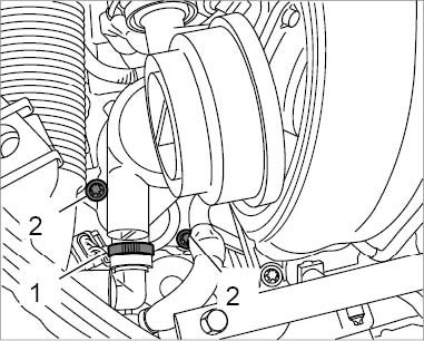 3. Fit and tighten two new Torx screws (M6 x 20) -2-. --> Tightening torque: 7.5 ftlb..