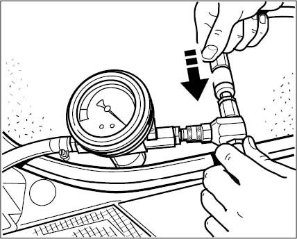 4. Connect vacuum pressure gauge of bleeder tool to the flexible extension. When doing so, ensure that both shutoff valves are closed (positioned at 90° to flow direction).
