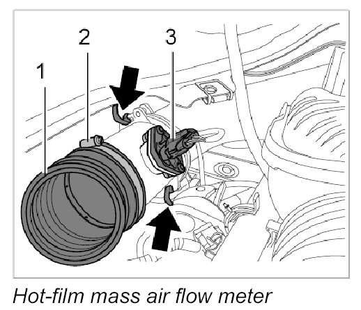 2. Release and disconnect cable plug for air flow sensor -3-.
