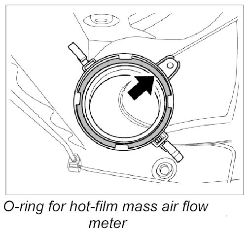2. Push air flow sensor into air cleaner housing flange. Ensure correct seating of the O-ring.