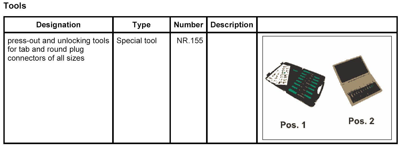 2. Position the press-out and unlocking tools for tab and round plug connectors of all sizes NR.155 on the primary locking mechanism and lift the locking mechanism.