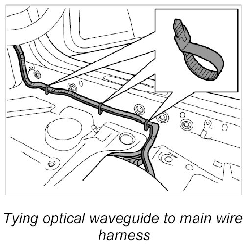 2. Route the new optical waveguide along the main wire harness, guide it through the existing cable ducts and tie it to the main wire harness using tie-wraps.