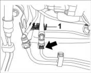 1. Release and disconnect fuel lines -arrow-. Collect emerging fuel in a suitable container.