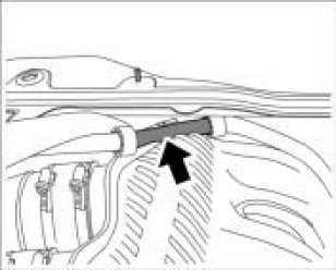 3. Disengage shift and selector cables or selector lever cable (Tiptronic) and place on the protective cover for the luggage-compartment lid.