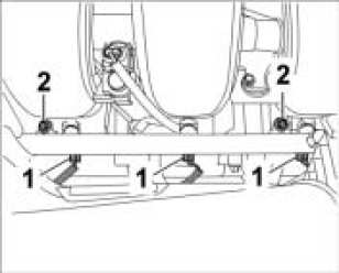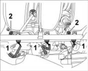 5. Unscrew two Torx screws (M6 x 10) -2- on the fuel gallery.