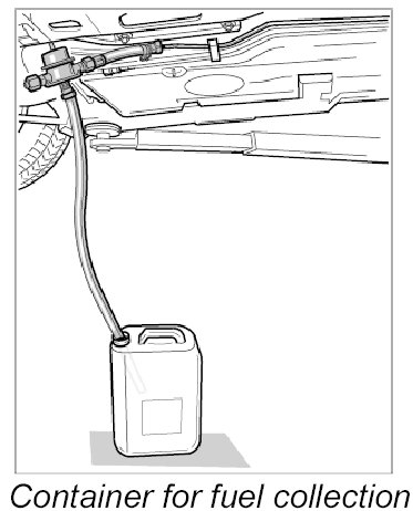 9. Place the drainage hose after the pressure regulator into a petrol-resistant container. Make sure that the container does not tip over.