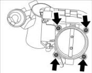 11. Unscrew four Torx screws (M6 x 50) -arrows- on throttle housing.