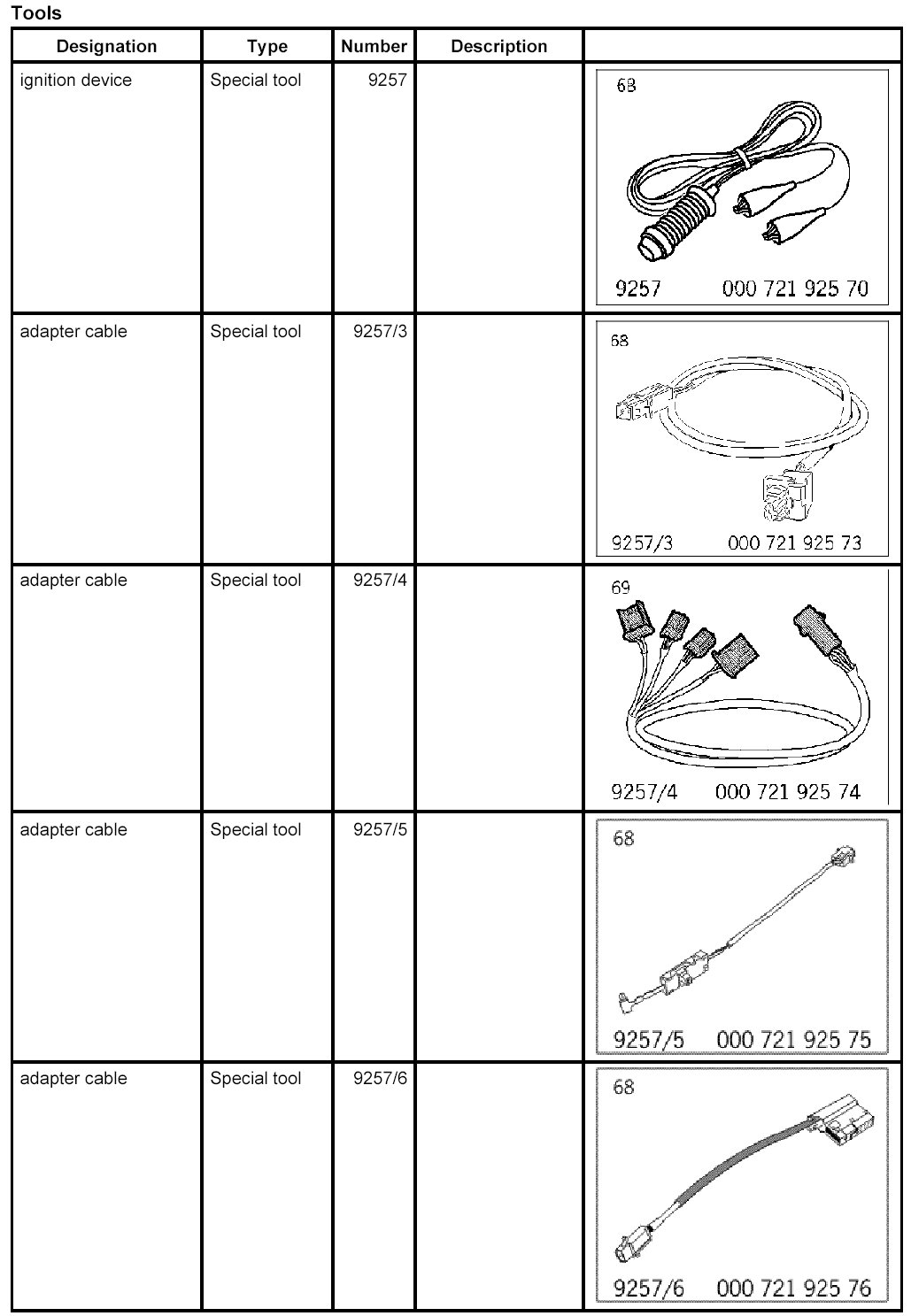 The adapter cable 9257/3 -E- is used for the belt tensioner.