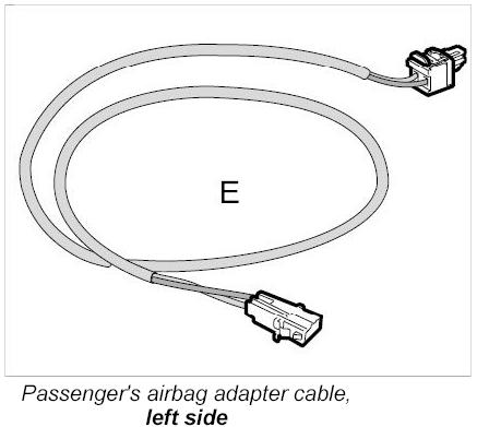 The adapter cable 9257/3 -E- is used for the passenger's airbag, left side.