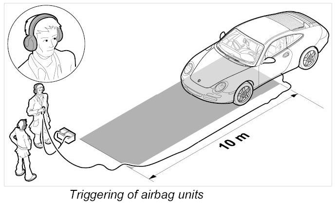 - Each airbag unit, the respective ignition stages 1 and 2, and each belt tensioner must be triggered individually.