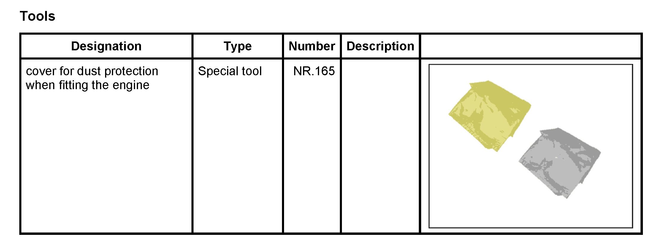 --> Use the cover for dust protection when fitting the engine NR.165 on the engine assembly support.