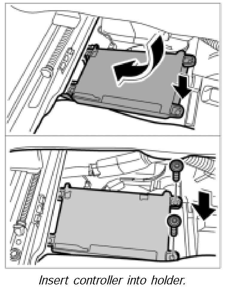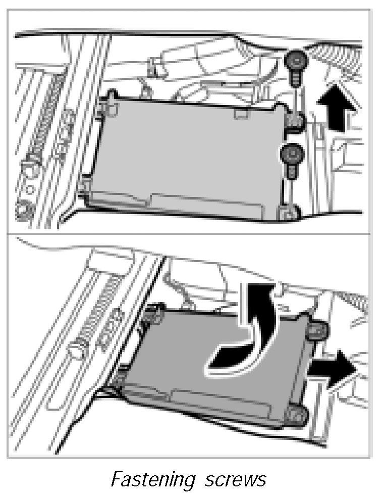 3. Engage the control unit in the holder -arrow- and screw down with both fastening screws.