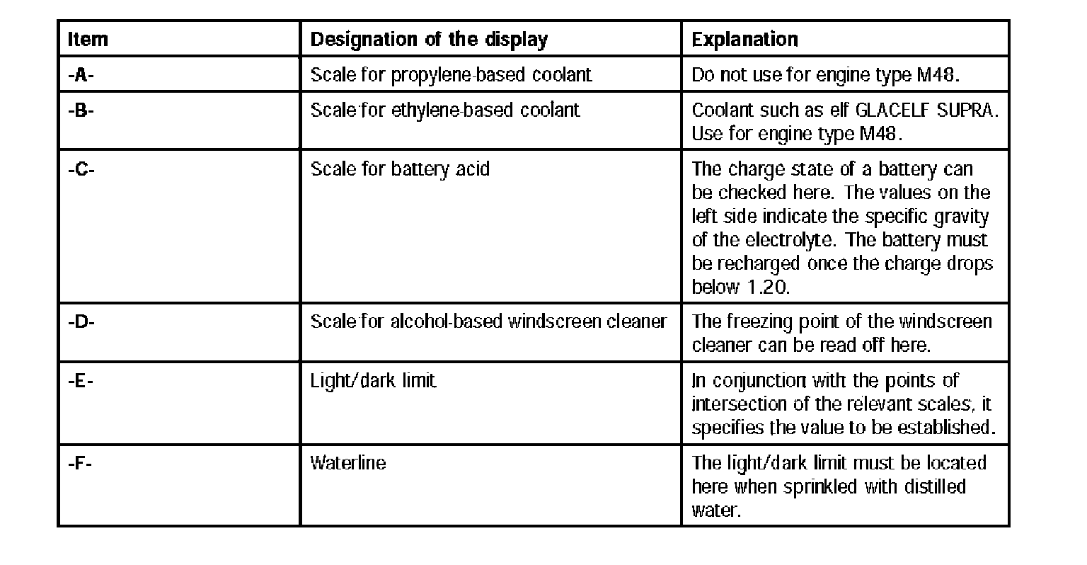 ^ The ETHYLENE scale must be used for Porsche antifreeze.
