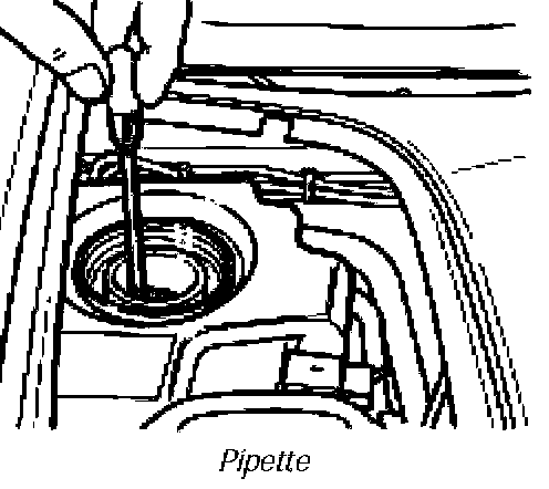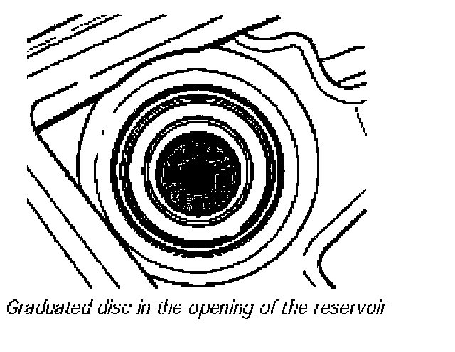 2. Check the coolant level. A graduated disc with a "min" and "max" marking is located in the opening of the reservoir. The "min" level must be covered with coolant.