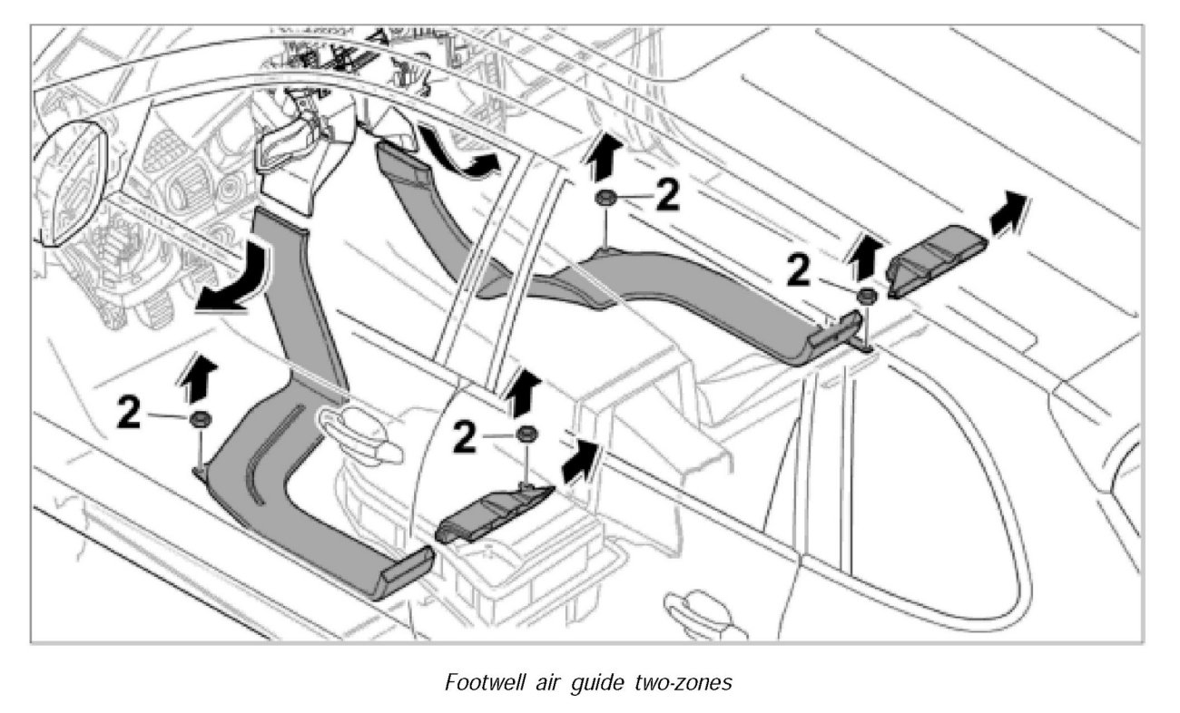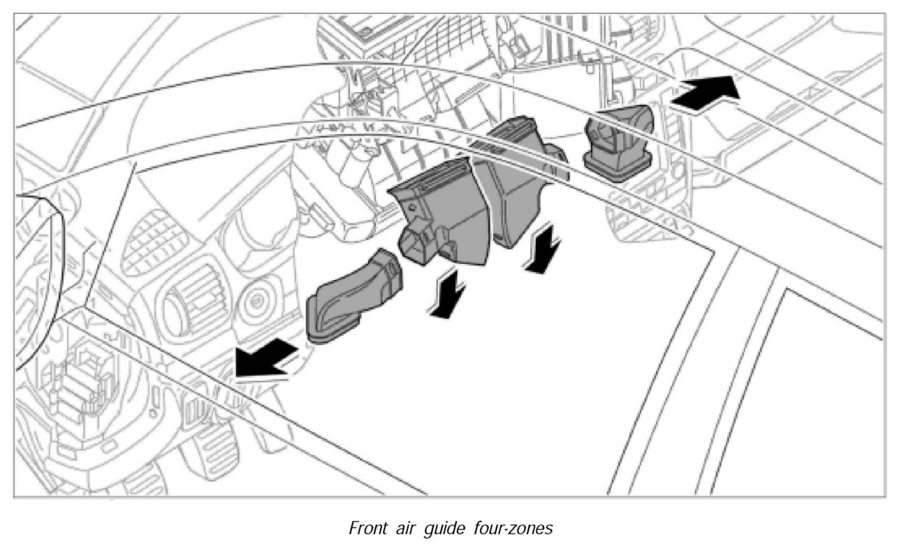 - The air guide auxiliary guide (rear four-zones) can be found under Removing and installing auxiliary air conditioning air guide.