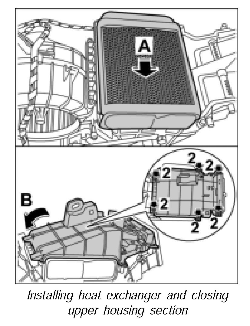 1. Insert heat exchanger into housing -arrow A-.