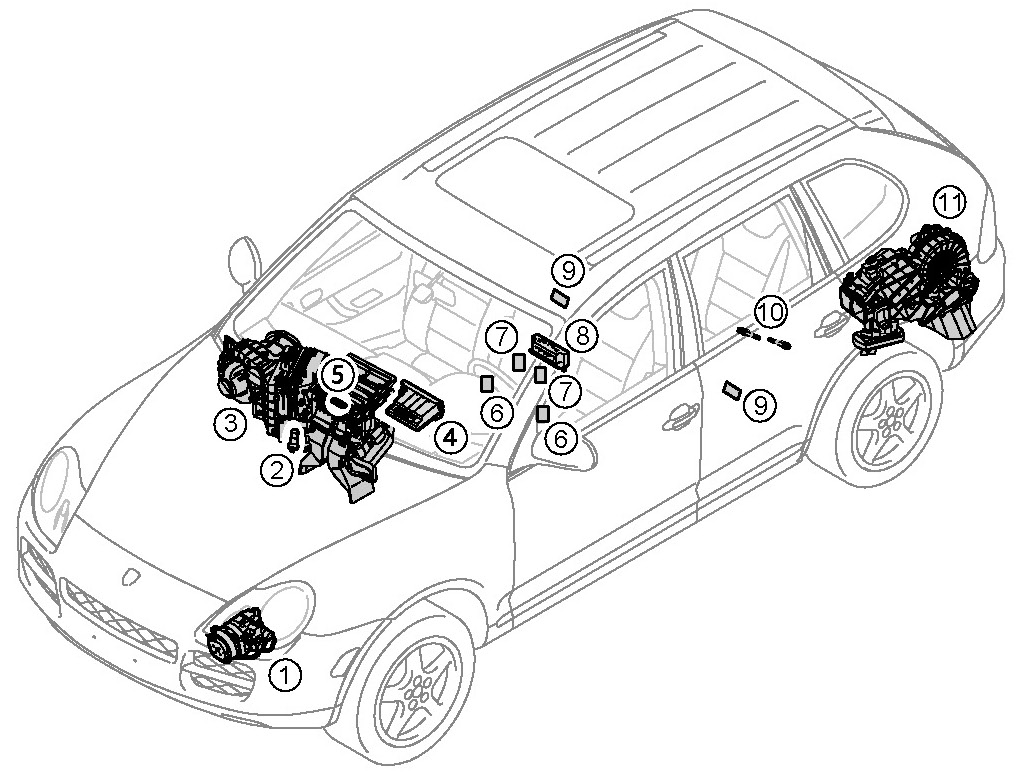 7 - Servo motors for passenger blower, rear left and right tunnel