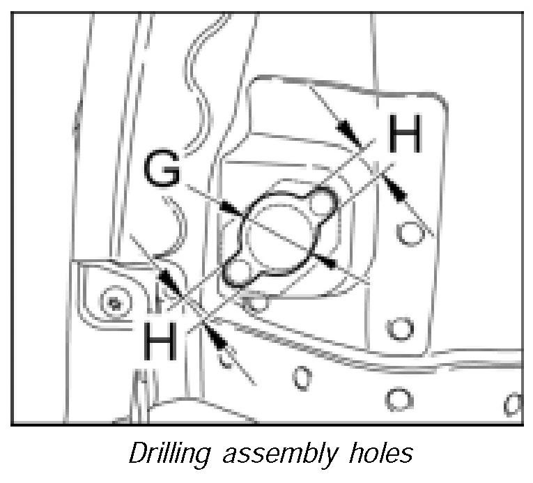 2.2. Use a centre bit to drill holes at dimensions -G- = 22 mm and -H- = 8 mm.