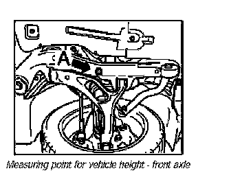 The measurement is made from the wheel contact area to the bottom edge of the side member of the suspension subframe -A- (in front of drain bore at connection point of control arm to suspension subframe).