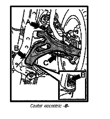 Caster is adjusted at caster eccentric -B-.