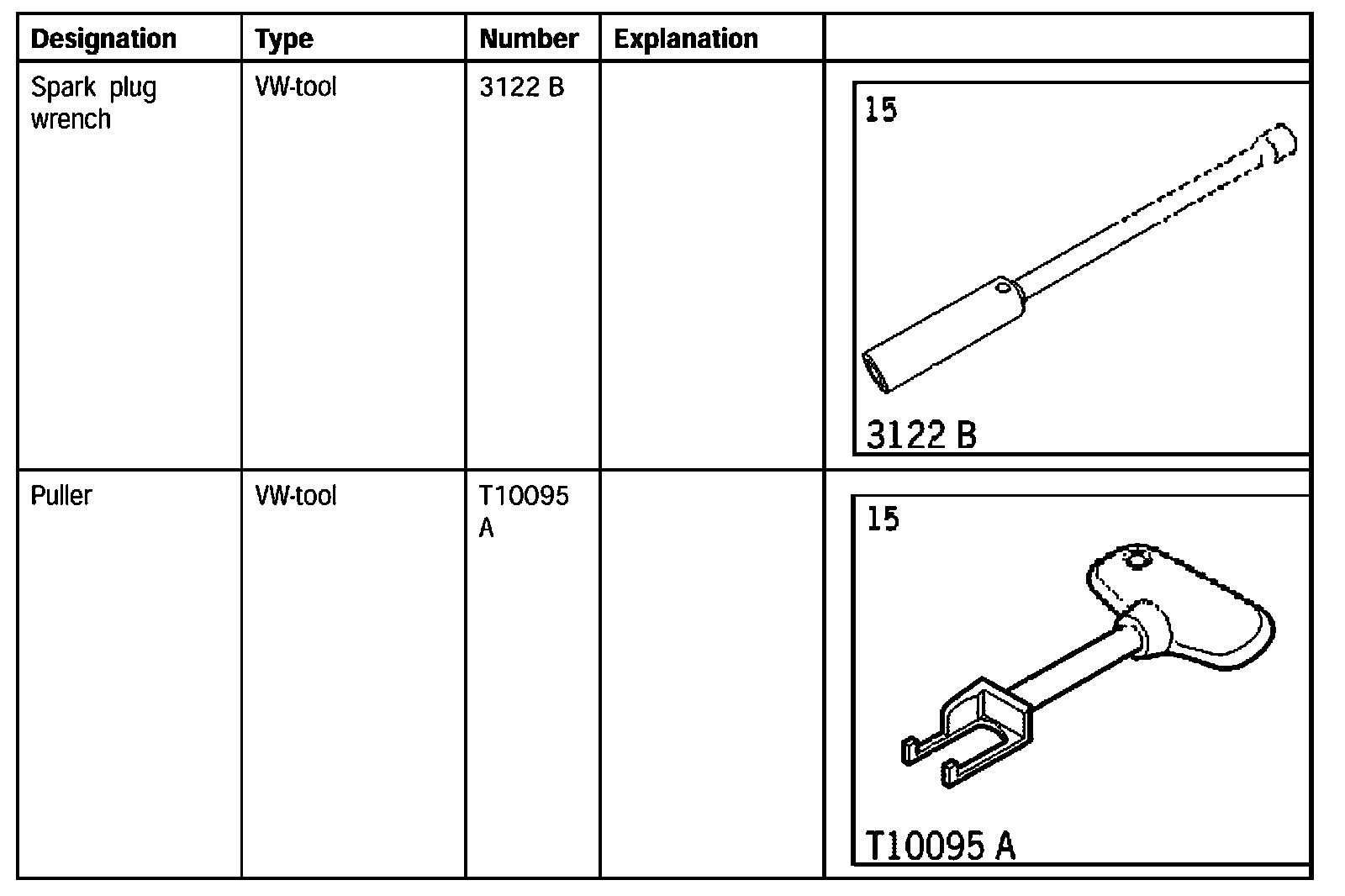 3. Tighten spark plugs using special tool spark plug wrench 3122 B. Tightening torque: 20 (15 ftlb.) Nm