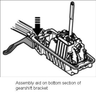2. Insert bottom section of gearshift bracket with installed shift and selector cables over the transfer box.