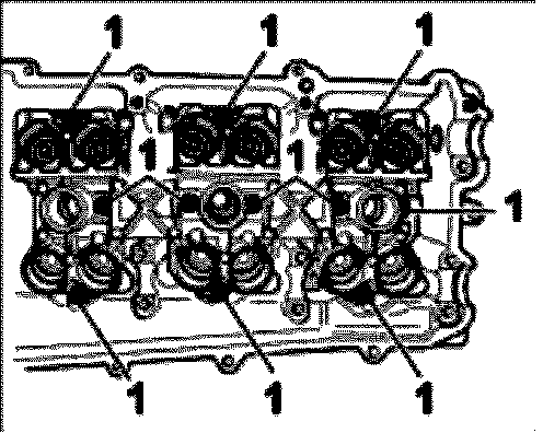 The installation of cylinder head side 4 -6 is carried out in the same way as the assembly sequence for side 1-3 with the following change: