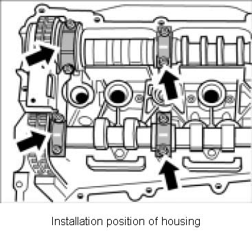 Note: Do not interchange the thrust bearings of the inlet and exhaust camshafts during assembly; observe identification markings.