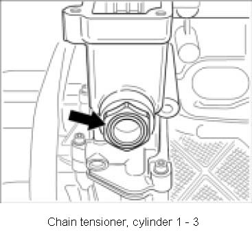 7. Remove chain tensioner for cylinders 1 -3 or -6.