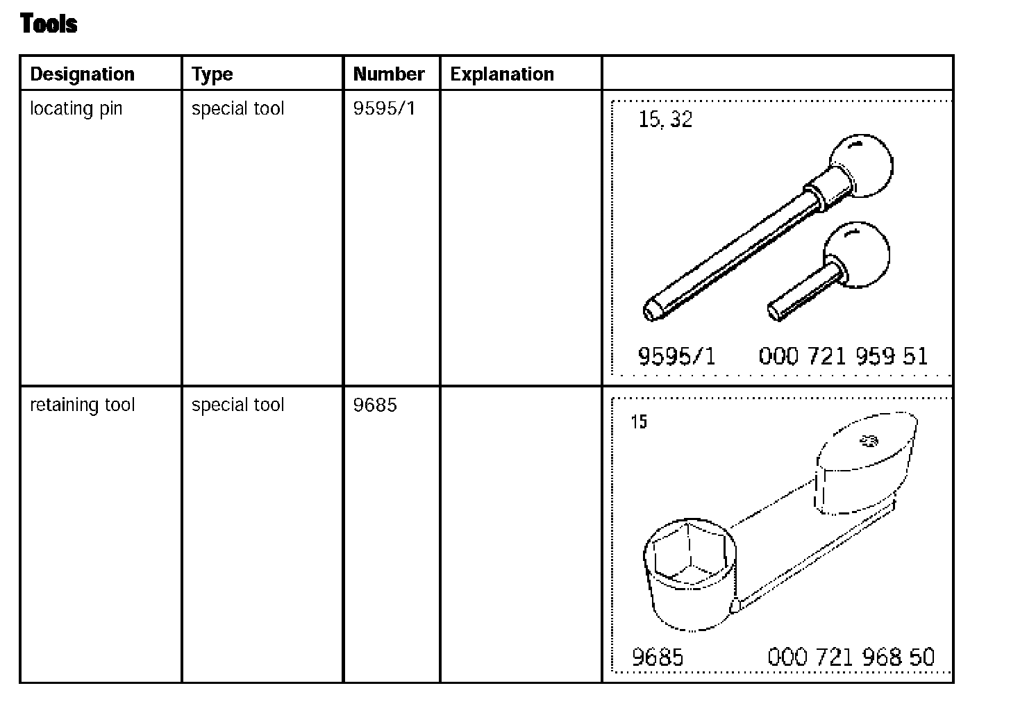 2. Disassembling cylinder bank 1 - 3 Turn crankshaft at the pulley/vibration balancer clockwise to the overlapping TDC of cylinder 1. Disassembling cylinder bank -6 Turn crankshaft to the TDC for cylinder. Using a locating pin 9595/ 1 fix the pulley or vibration balancer.