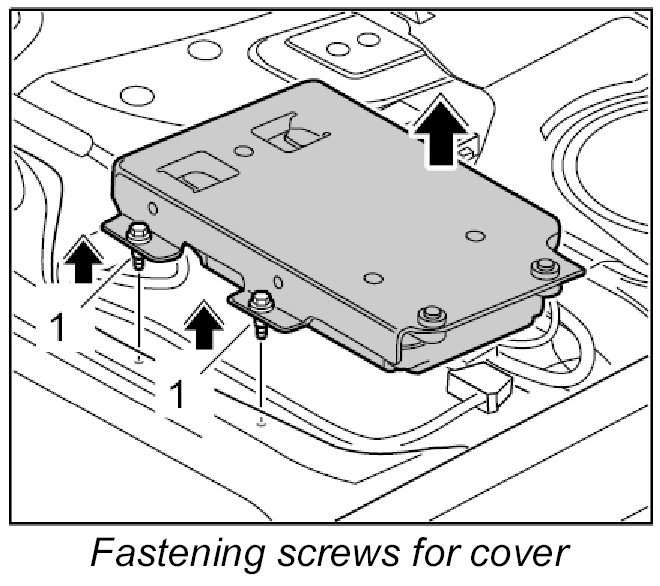 4. Turn over the cover and telephone control unit, position it on the floor of the vehicle and screw down with fastening screws -1-. - Tightening torque: 5 Nm (3.5 ftlb.)