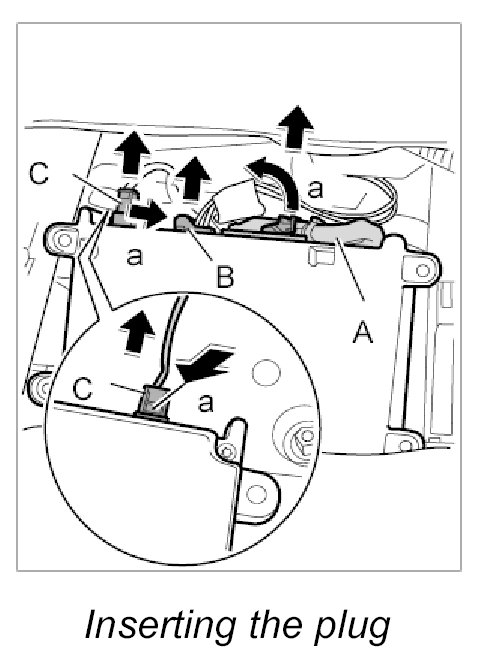 2. Push in electrical plug connections -C, B - until plugs are felt to engage.