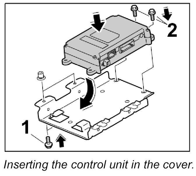 1. Insert control unit into the cover and screw tight with the two fastening screws -2-. - Tightening torque: 2 Nm (1.5 ftlb.)
